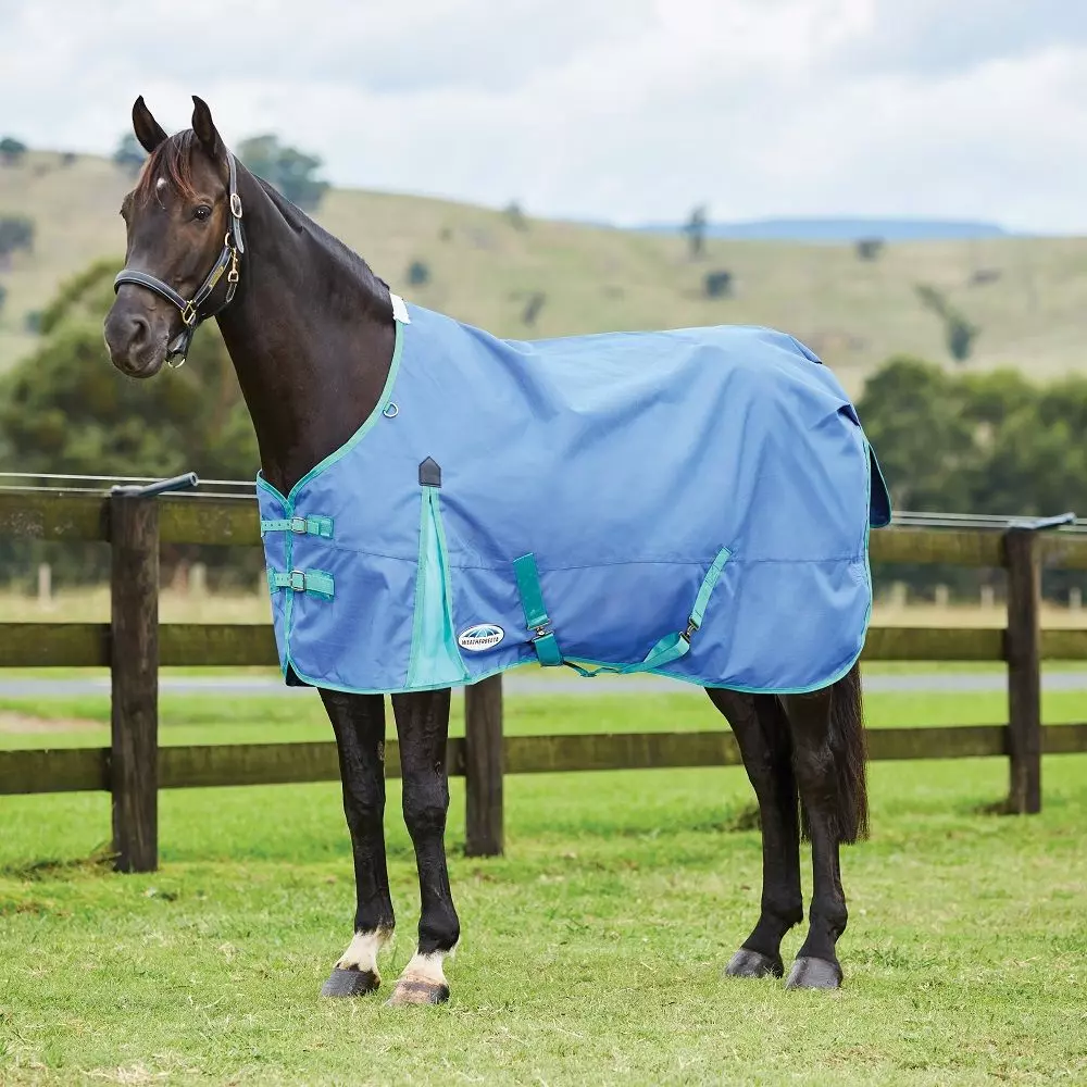 Classic style at a great price. The WeatherBeeta ComFiTec Classic Standard Neck Medium/Lite features a tough 600 denier ripstop outer shell with repel shell coating that is both waterproof and breathable with 100g of polyfill. Smooth and durable 210T polyester lining, traditional side gusset for natural movement, twin adjustable buckle front closure, adjustable & removable leg straps, twin low cross surcingles and standard tail flap. 100% boa fleece wither and 3 D-rings to allow for attachment of neck rugs (neck rug sold separately). Hydrostatic pressure tested to 2000mm plus. Moisture vapour tested to 2000g/m2 plus. 3 year warranty on hardware, waterproofness and breathability on turnouts.